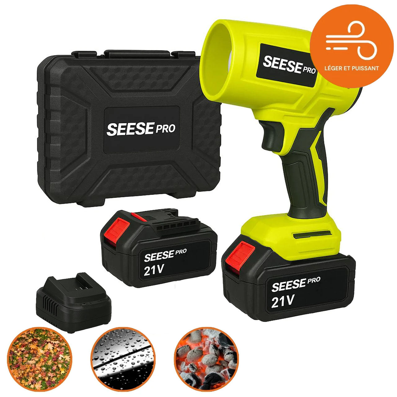 Viele konkurrierende Laubbläser sind sperrig, laut und kabelgebunden. Der Seese Pro bietet Ihnen kabellose Freiheit, ein minimales Gewicht und keine Wartung.